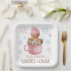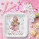 Wasserfarben, skurrile Kinder Geburtstagspapiere Teller mit einem bezaubernden Mädchen Lebkuchen kochen genießen ein Bad in einer Tasse von Kakao und Marshmallows mit pastellfarbenen Schneeflocken Akzenten. Die perfekte Art, um den Winterfeiern oder Weihnachts-Geburtstagsfeiern eine fröhliche, festliche Touch hinzuzufügen. Kunst von KL Stock