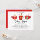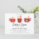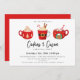 Niedliches illustriertes Trio von winterheißen Kakao-Tasse, Feiertag Einladung. Trendy Typografie Design Stil Template Text mit solide koordinierende rote Farbsicherung.