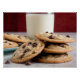 Ein Teller mit Schokoladenkeksen und ein Glas Milch.