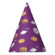 Cookies und Milch auf lila Partyhütchen