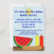 Das Wetter ist groß und es ist Zeit für Cookouts im Freien! Diese bunte Einladung kennzeichnet eine Wassermelone, ein Würstchen, einen Ketschup und einen Senf unter einem hellen Sonnenschein. Ein großes Thema für Geburtstage, Familienwiedervereinigungen und Ansammlungen. Ursprüngliche Kunst durch die Menagerie der Nachteule, 2010.
