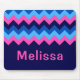 Ein mit Monogramm Mousepad mit einem hellen, farbenfrohen Design von blauen und rosa Chevrons. Erstellen Sie das passende Geschenk, indem Sie auf die Schaltfläche "personalisiert" klicken, um einen Namen oder eine benutzerdefinierte Nachricht im vorgegebenen Vorlagenfeld hinzuzufügen. Klicken Sie auf den Link "Weitere Anpassung", um den Schriftart, die Textgröße und vieles mehr zu ändern.