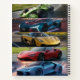 a notebook with cars. that you can put your name on the front. with five cars on the back