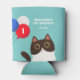 These cute birthday can coolers feature a cute kitty with party balloons. Personalize the birthday can coolers by adding your child's name, age, and party details.