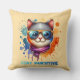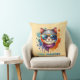 Stylish cartoon cat wearing sunglasses and a scarf with colorful paint splash background. A hipster cat.