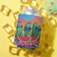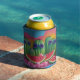 Dieses verspielte und surreale Bild zeigt eine Gruppe von anthropomorphen Kakteen, die coole Sonnenbrillen zeigen, umgeben von saftigen Wassermelonen-Scheiben und verstreuten rosa Bonbons. Die lebendige Farbpalette und die skurrile Komposition schaffen eine lustige und sommerliche Atmosphäre.