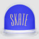 This festive sporty winter design features tall, slim, centered, curved SKATE text against a bright royal blue background.