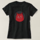 Cooler Gothtee mit einer Cartoon-Illustration eines lustigen bösen Monsters mit scharfen Zähnen und Haaren, die aus den Ohren grinsen, in Rot und Grau. Dieses böse Monstertee wird jemanden anziehen, der böse Charaktere, Cartoon und gotischen Stil mag.