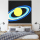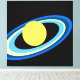 Der Saturn kehrte zurück. Dieses spaßige Design zeigt eine frühe Version meines Saturn Reimagined Graphic Art zeichnend - eine dramatische, solide schwarze Leinwand des Weltraums, leuchtend gelber runder Planet und Aqua, leuchtend blau, grün und weiß kreisende Ringe.