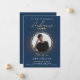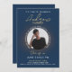 Es ist an der Zeit, Ihren Abschluss zu feiern und Ihre Gäste zu einem Party mit diesem modernen Foto einladen. Auf der Vorderseite ist ein minimalistisches Design mit einem modernen Fake in Gold und Weiß-Schrift und einem anpassbaren Foto auf dunkelmarineblau-blauem Hintergrund. Die Rückseite ist mit dem gleichen einfachen, stilvollen blauen Hintergrund versehen. Sie können das Foto und die Texte ändern und eine personalisierte Einladung machen.