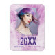 Cooler, moderner Grunge-Stil, Abschluss-Ankündigungsmagnet in Rosa und lila. Dieses einzigartige, maßgeschneiderte Design zeichnet sich durch Ihr persönliches Foto, Ihren Namen, den Abschluss, das Schuljahr, die Uni oder den Universitätsnamen aus.