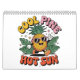 Stay organized and brighten every month with this Cool Pine Hot Sun calendar! Featuring a playful, retro-style pineapple wearing pink sunglasses, surrounded by bold tropical leaves, this cheerful design brings sunny, carefree vibes to your walls or desk all year long. Each page bursts with vibrant color, making it easy to keep track of important dates, appointments, birthdays, and events in tropical style.