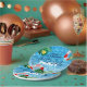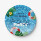 Die Teller zum Geburtstag des Party im Swimmingpool bieten eine tropische Atmosphäre mit klarem blauem Wasser, aufblasbaren Stoffen, Blätter aus Palmen, einer gelben Blume, deren Name und Alter. Der perfekte Rahmen für ein Fab-Pool-Party. Matching-Elemente in der Auflistung verfügbar.