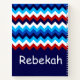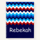 Ein mit Monogramm Spiralheft in Standardgröße mit einem farbenfrohen, trendigen Design aus roten, weißen und blauen Chevronen. Erstellen Sie das passende Geschenk, indem Sie auf die Schaltfläche "personalisiert" klicken, um einen Namen oder eine benutzerdefinierte Nachricht im vorgegebenen Vorlagenfeld hinzuzufügen. Klicken Sie auf den Link "Weitere Anpassung", um den Schriftart, die Textgröße und vieles mehr zu ändern.