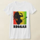 © Sunny Mars Designs. Reggae Rastaman Gitarre Playing Custom T-Shirts - Coole jamaikanische T - Shirt mit der Silhouette eines Rastafariers, der Reggae-Musik singen und Gitarre auf abstraktem Hintergrund in grün, gelb und rot Jamaika-Farben spielen.