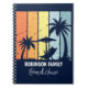 Personalisiertes marineblaues Notebook für Ihr Familienstrand in Hawaii, Florida oder anderen Inseldestinationen. Coole Palmen versetzen sich gegen die Retrofarben Orange und Gelb über Ihrem individuellen Urlaubsnamen in weißer Schrift. Matching Geschenke sind ideal für Gruppen, die eine Kreuzfahrt oder einen Ausflug an der Küste unternehmen.