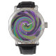 Cool Retro Lila und Chartreuse Liquid Art Swirl Armbanduhr