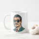 Eine stilvolle, weiße Tasse mit einer Retro-Schnurrbart-Manillustrierung. Ideal für Kaffee- oder Teeliebhaber!
