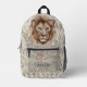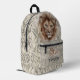 Der coole Safari-Löwe-Rucksack hat einen erbitterten, majestätischen Löwen, der aus der Bürste herausguckt. Auf der Vorderseite ist der Reißverschluss ein Löwe in der Erholung und ein Ort für Ihren personalisierten Namen oder anderen Text. Sie haben auch die Möglichkeit, die Farbe von Schriftart und Schriftart mit der Funktion Design Tool zu ändern.