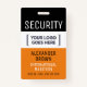 This sleek, modern black and orange security ID badge features a customizable front design with your company logo and text. The back includes a white info script, all set against a striking black and orange background for enhanced visibility. Its versatile, minimalist design is perfect for events like sports, concerts, and more. Ideal for professional identification, it ensures clear and stylish branding. Personalize and order yours today for a secure, professional look!