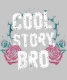 Ein gewagter und edler Kunstdruck mit dem populären Satz "Cool Story, Bro" in einem bedrückten Grunge-Stil, umgeben von faszinierenden Rose und Dornen. Ideal für Liebhaber der dunklen Ästhetik und der Dekorelemente.