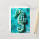 Here's a really neat design featuring a glittering turquoise seahorse.