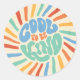 Dieser trendige, runde Aufkleber hat ein Pop-Art-Ambiente mit fröhlichen Farben und Typografie. Das Design wurde um einen Vintag-grunge-Effekt ergänzt, der ihm ein abgenutztes, Retro- und Vintages Aussehen verleiht.