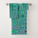 Dieses Coole Farbtuchhandtuch-Set besticht durch ein Cooles, Abstraktes, grün und schwarz-atomares Retro-Zigzags-Design mit Akzenten aus Aqua, Pink, Blau, Limettengrün, Lila und Orange. Das Ergebnis ist ein Cooles, farbiges, Groovy, Psychedelic, Retro, Wavy Abstraktes Bild, dass Sie Liebe!