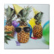 Bunte Ananas mit Party-Hüten und Ballonen. Eine der Ananas trägt coole Sonnenbrillen.
