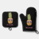 Coole Ananas, Schwarzkarosse Ofenhandschuh & Topflappen-Set