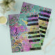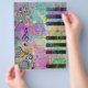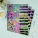 Coole Aquarellfarben Spritzer farbenfrohe antike Grunge Piano Musiknoten Wirbel Punkte, rosa blau-gelb-orange weiß, schwarz lila Farben Bild drucken