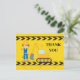Cooler Sonderbagger Vielen Dank Postcard für ein Kind, das gelbe Baufahrzeuge in schwarz und gelb Liebe. Fun Fahrzeug Design für einen kleinen Jungen, der Lieben von Autos und LKWs. Passen Sie den Namen Ihres Kindes unter dem schwarz-gelben Warnband an.