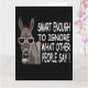 Cool Smart Donkey Grußkarte von Nisha Prabhu entworfen. Niedlicher, kluger Esel in cooler Sonnenbrille mit spielerischem Text ''Klug genug, um zu ignorieren, was andere Leute sagen.' Schicke ein Lächeln mit dieser Coolen Smart Donkey Grußkarte! Lassen Sie sich von dieser hübschen Grußkarte mit einem coolen, cleveren Eseldesign verzaubern. Egal ob Sie einen Geburtstag feiern, gute Wünsche senden oder einfach nur Sprichwort hallo, diese Karte ist für jeden Anlass perfekt. Die spielerische Grafik und die lebhaften Farben machen diese Karte zu einer herausragenden Wahl für diejenigen, die eine Touch von Launen schätzen. Diese Grußkarte, die auf hochwertigem, glattem Karton gedruckt wurde, strahlt Stil und Langlebigkeit aus. Mit dieser coolen Eselkarte, die viel Platz für Ihre persönliche Nachricht bietet, können Sie sich auf angenehme Art und Weise mit Ihrer Liebe vertraut machen. Freude und Lachen mit dieser einzigartigen und lustigen Grußkarte, die sicher einen bleibenden Eindruck hinterlassen wird!