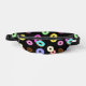 Coole und lustige Donuts Muster schwarze Tasche Zubehör. Muster hergestellt aus Illustrationen von vielen köstlichen Backen Donuts mit allen Arten von Farbverglasung, Schokolade, Vanille und alle Farben, blau, gelb, rosa, lila, cyan.