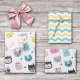 Hier ist ein niedliches Set von Geschenkpackpapier-Blätter für alle, die Lieben Katzen! Zwei der Blätter haben ein Muster von niedlichen, coolen Cartoon-Katzengesichtern in verschiedenen Farben, aber vorwiegend aquamarin, gelb und rosa. Die Bilder werden auf einem weißen Hintergrund platziert. Das dritte Blatt hat ein Zickzack, koordinierendes Streifen-Muster im gleichen aquamarinen, gelben und weißen. Eine niedliche Geschenkpackung, die für viele Geschenkveranstaltungen geeignet ist, inklusive Geburtstage und Babyduschen.