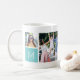 Erstellen Sie mit dieser phantastischen Tasse mit Monogramm Foto Collage Ihre ganz eigenen coolen Sake Ihrer Lieblings-Erinnerungen, Hochzeiten Fotos oder Urlaubsschnaps! Dieses einfache Design setzt 4 Ihrer Lieblings-Instagram-Schnappschüsse vorne und in der Mitte, zusammen mit einem Single Initial-Monogramm auf jeder Seite. Mit sechs quadratischen Fotos von Freunden, Kindern, Enkelkindern, Haustieren oder Ihren Lieblingsorten, mit dem ersten weißen Buchstaben auf einem sonnigen türkisfarbenen Aqua-Platz.