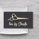 Coole, anpassbare Visitenkartenvorlage mit dem Imitat Gold-Schere-Symbol. Ideal für Schönheitssalon, Friseur.