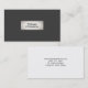 Berufliche Netzwerkkarte für den Namen mit minimalem Design und solidem dunkelgrauem Hintergrund. Digitales Bild der silbernen Metallplakette - NICHT das Richtige. . Eine berufliche, elegante Karte. Nach Wunsch hinzufügen, arrangieren und neu vergrössern. Bei der Bestellung von dunkleren Designs wird ein Premium-Kartenbestand empfohlen. Dadurch wird eine reiche, robuste Karte garantiert, die mit einem reichen, scharfen Druck bis zum Oberflächenkratzer aufrecht steht. Bevorzugen Sie eine andere Farbe? Mit der Farbuhr-Option können Sie den Hintergrund Ihrer Wahl ganz einfach anpassen. Eine großartige Karte für Künstler, Fotografen, Produzenten, Autoren, Computertechniker, Berater, Designer, Unternehmer, Blogger Filmemacher, Autoren, Therapeuten und mehr.