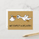 Coole Schwangerschaft Postkarte. Eine coole Comic-Pappkarte mit Storch mit Baby und ein persönlicher Text: Wir erwarten eine Lieferung! Der perfekte und originelle Weg, um Ihren Freunden zu sagen, dass Sie ein Baby erwarten!