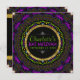 Schöne Schwarz-Licht-Kunst inspiriert Bat Mitzvah Einladung Design bunt uv Neon Farben aussehen. Gold getrimmt rund Plakette, um den Namen, den Veranstaltungsnamen und das Datum auf der Vorderseite der Karte anzuzeigen. Ein Glühen im dunklen Party inspirierte Design, kombiniert mit einem prächtigen funkelnden hellen Lichteffekt mit einem geometrischen Sternmuster aus schwarzhellem Fuchsienrosa und hellen fluro Farbtupfern. Das Design geht auf der Rückseite mit Platz für mehr Text mit passenden Trims. | Natürlich würde dieses Design auch Anzug jeder Art von besondere Anlass und Veranstaltungen, einschließlich groovy Brautparty, Blacklight Dinner Party, psychedelischen Geburtstag und vieles mehr | Mit Liebe erstellt von Webgrrl.biz