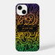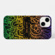 Cooles personalisiertes iPhone Gehäuse mit handgezeichneten Doodles in Regenbogenfarben auf schwarzem Hintergrund. Der Text ist vollständig anpassbar.