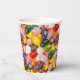 Coole farbenfrohe Osterbohnen Jelly Candy Paper Cups. Cool, unterhaltsam und farbenfroh in allen Print Party Supplies. Foto von gelben, roten, weißen, grünen, rosa glänzenden Geleebohnen.