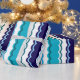 Verwöhnen Sie Ihre Geschenke mit einem lustigen und modernen Muster von geschliffenen Streifen Säulen. Dieses Muster ist eine Mischung aus Blues und blauen grünen Jakobsmuscheln und fühlt sich wintery und festlich auf einem knackigen, weißen Hintergrund und bringt ein Gefühl von grafischer Laune in den Geschenkstapel.