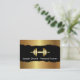 Fitnesstrainer-Geschäftskarten mit irgendeiner cooler Faktor- und Entwurfsschablone, die Sie mit einfachem aber effektivem Entwurf besonders anfertigen können, der ein Gold DruckFitnesssymbol in Form eines modernen Dumbbell, Gold Druckentwurfselemente und eines Textes umfaßt, Sie online personifizieren können. Entworfen als Geschäftskartenschablone für Themen bezog sich auf Gesundheit, Fitness, körperlicher Therapie oder persönlichem Training.