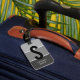 Cooles, vollständig anpassbares Gepäckanhänger-Design mit grauen Streifen und fett schwarzer Monogramm. Modernes, elegantes Design.