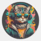 Coole Groovy Cat mit Kopfhörern Musik hören Runder Aufkleber