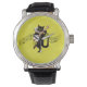 Coole Katze Banjo auf Gelb spielen Armbanduhr