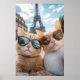 Zwei stilvolle Katzen Pose vor dem Eiffelturm, rockende Sonnenbrillen und die ultimative Reise-Selfie an einem sonnigen Tag in Paris.