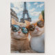 Zwei stilvolle Katzen Pose vor dem Eiffelturm, rockende Sonnenbrillen und die ultimative Reise-Selfie an einem sonnigen Tag in Paris.