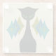 Der moderne GlasUntersetzer der coolen Katzen-Mitte des Jahrhunderts kennzeichnet Fünfzigerjahre - schwarze Katze Sechzigerjahre Art mit grünen Augen und retro Diamantgraphiken in Grünem und im Blau. Der Hintergrund ist elfenbeinfarben.